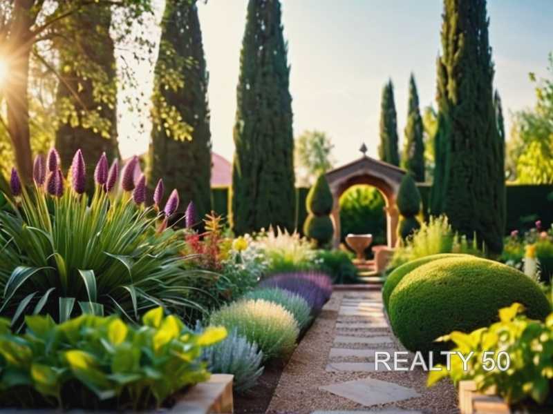 - Кустарники: Барбарис, Лаванда, Розмарин.